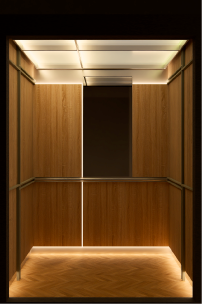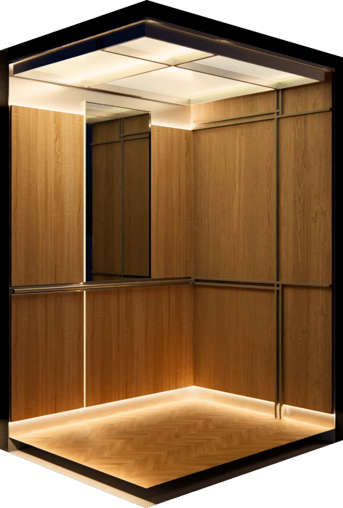 Sky Luxe offers bespoke designs with premium materials like custom wood veneers and high-end laminates, complemented by state-of-the-art LED lighting solutions for a truly luxurious elevator experience.