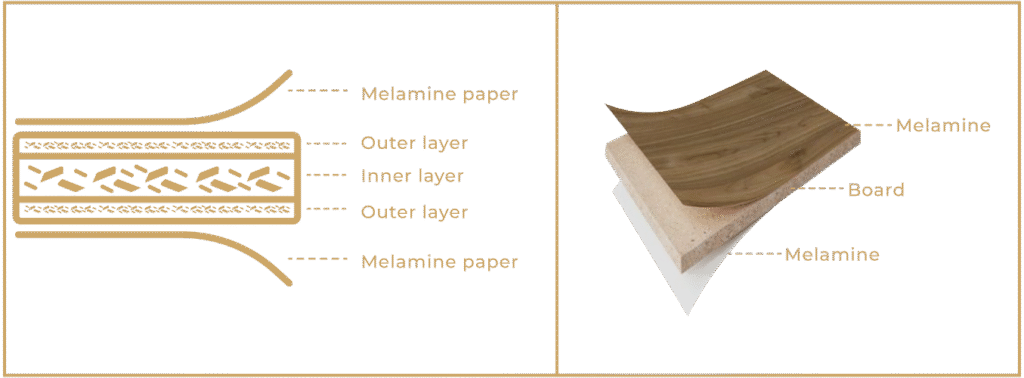 We work with high-quality particleboards with melamine coating on both faces and rigid edging along their perimeter, ensuring precision and durability. They are certified under EPA, TSCA TITLE VI and CARB PHASE II standards, which are required for export to the United States.