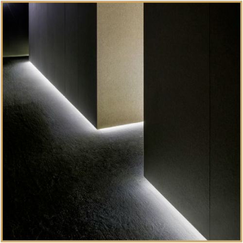 In addition to the boards, our designs are complemented by the use of metals, mainly 304 stainless steel, for handrails, baseboards, mirror frames and reveals, which provide durability, elegance and contrast with the wood. We also consider light as a material, given the intentional way we use it to highlight textures and build unique atmospheres in each intervention.